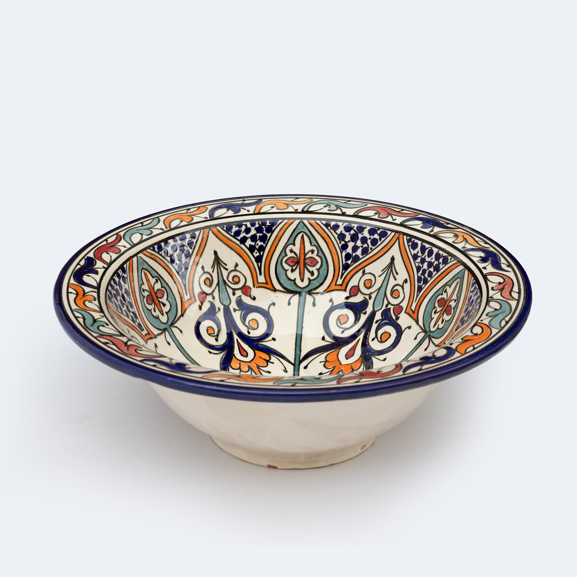 Marocké keramické umyvadlo FES 10 je vyrobeno ručně z čisté keramiky a následně malováno marockými umělci.